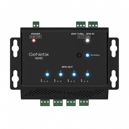 GeNetix Nodes provide a solution for remote data distribution in a wide variety of applications. Supporting industry standard protocols like Art-Net, sACN, RDM along with advanced features including DMX Fallback, Merging and Scene Storage