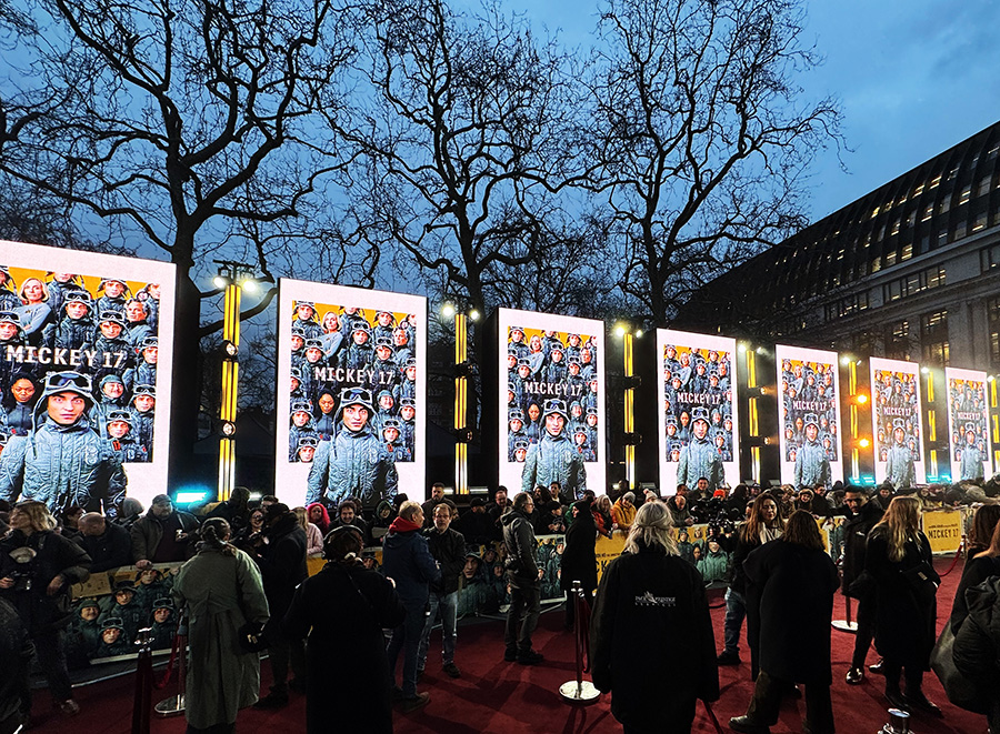 As is the case with any event that takes place in Leicester Square, the Mickey 17 premiere had its share of challenges. Load-in and tear down schedules had to be arranged carefully to meet time and space restrictions. And the structure for the video panels had to be constructed to account for the sloping surface of the area. Project Manager James Mason and LED Technician Dan Ainsley from IPS were more than up to the task of meeting these challenges, leading a dedicated team of colleagues, they helped the premiere come off without a hitch, ensuring that the “human condition” on this London evening was indeed a happy one.